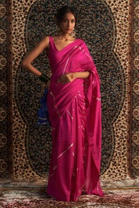 Prarambh Rani Pink Embroidered Chanderi Saree with Blouse