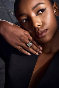 A regal ring with an arrangement of four princess cut square diamonds exudes elegance and sophistication, creating a stunning display of brilliance fit for royalty.