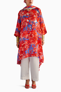 Featuring a digitally printed A line highlighted kurta with pants. It comes along with the same printes dupatta with lace.
