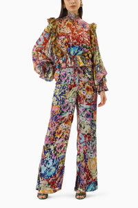 Featuring this vibrant easy fit bell flower trousers with splash of colors. Pair it with a matching top for evening events with statement earrings & a clutch.