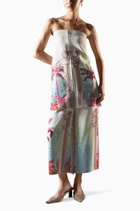 Featuring Printed Cara Blazer Set by Mero's Edgy Arc collection. This bold co-ord set includes a tube-style printed blazer adorned with intricate hand embellishments, paired with straight flare pants. A striking blend of structure and artistry for confident, high-impact styling.