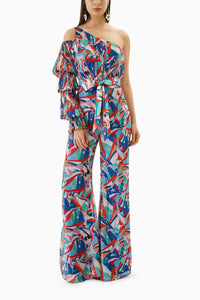 Blue Printed Chiffon Jumpsuit With Belt - The Sverve