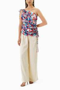 Redefine your charming look with this exclusive top and pants. Cut in satin and dust satin fabric, the top has geometric print with side details paired with ivory pants. It assures a soft and soothing touch against the skin. Style this with a pair of high heels & statement earrings.