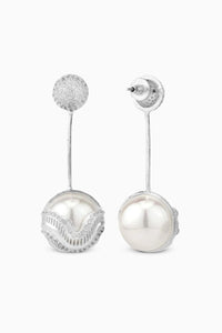 Add a touch of sophistication with the Prism Drop Pearl Earring. Featuring a classic white pearl, this earring combines hypoallergenic brass with dazzling AAA cubic zirconia for a refined sparkle. The sterling silver post ensures a comfortable fit, making it a timeless addition to any jewelry collection.
