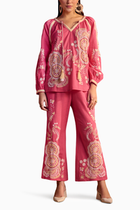 Featuring the Provance Embroidered Coord Set by Boho Chic, Love Cabo Collection. Finely crafted with all-over embroidery, lace-trimmed detailed tassels, and half-elasticated pants for comfort and style. A perfect blend of elegance and versatility for any occasion.
