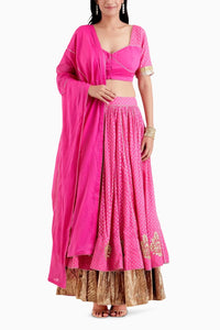 Rani Pink cotton mal foil printed gota patti zardozi embroidered layered lehnga - blouse with hand embroidered dupatta.