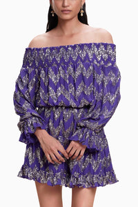 Stand out in our Purple off-shoulder dress with chevron sequins! Combining sophisticated style with dazzling sparkle, this dress is your perfect choice for a memorable and fabulous girls' night out.