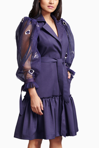 Featuring Purple Cutwork Jacket Dress by Deepika Arora. A jacket dress with cutwork on puffed net sleeves.