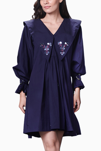 Featuring the Purple Sailor Collar Embroidered Dress by Deepika Arora. Fashioned from 100% cotton, this dress seamlessly blends comfort with style. Enhanced by hand-embroidered sailor collars, it adds an elegant touch to the regal purple hue, making it a standout piece in your wardrobe.