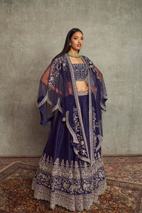 Featuring purple embroidered cape paired with a matching blouse and lehenga. The set is crafted with the finest materials and will accentuate the look.