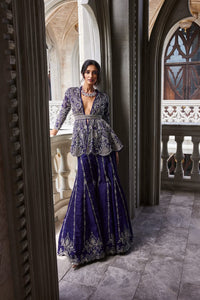 Featuring purple embroidered short jacket paired with an embroidered sharara and belt. The set is crafted with the finest materials and will accentuate the look.