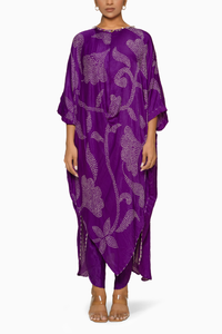 Featuring a Purple Ikebana asymmetrical kurta with button details on the neck paired with overlap dhoti pants.