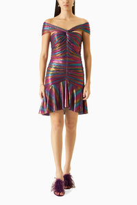 Made with a fabric that boasts of a self-sheen, this playful dress captures the magic of a rainbow with the silhouette that will flatter you.