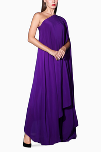Featuring Purple One Shoulder Kaftan Dress by Swatee Singh. Embrace elegance in magic purple crepe. This loose-fit, one-shoulder kaftan dress is a captivating statement of contemporary sophistication.