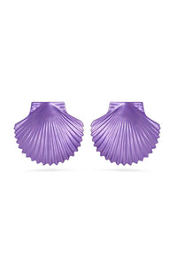 Add regal charm with the Valliyan Purple Tops Shell Earrings. Crafted from copper and brass, these earrings feature a striking shell-inspired design in rich purple, finished with 22k gold or white rhodium plating—perfect for elevating your style with bold elegance and color.