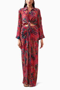 The Multi color Qala Embellished Shirt with Waist Tie-Up offers a vibrant, eye-catching design with intricate embellishments that add a touch of glamour. Paired with a draped skirt in Crepe, the ensemble flows effortlessly, combining modern chic with traditional elegance. Perfect for festive or semi-formal occasions, it creates a bold and sophisticated look.
