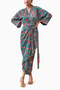 Qala Embroidered Drape Dress With Waist Tie-up