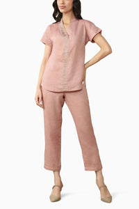 This flattering V-neck top features a fitted silhouette with extended sleeves, offering effortless movement throughout the day. Embellished with geometrically patterned rose gold studs using heat press craft, it exudes elegance, making it perfect for a festive occasion. Designed for a comfort fit, it combines style and ease seamlessly.