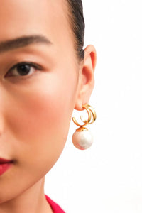 Elegant Queen Drops earrings feature a 1.5-inch white design crafted from hypoallergenic brass. Each earring weighs 16.86 grams and secures with a pushback closure. Perfect for adding a touch of sophistication to any outfit.