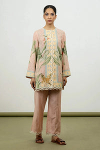 The Quince Pink Co-Ord is a graceful cotton silk set featuring a soft tunic and matching palazzos, delicately detailed with appliqué lace embroidery. Its blush pink tone and airy silhouette make it perfect for festive days, elegant brunches, or elevated everyday wear.