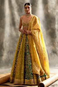 Featuring a colour-blocked silk organza lehenga adorned with fine gota patti embroidery and delicate dori work, beautifully bordered with lampi, khadi, and traditional kiran. The underlayer showcases dense gota strip embroidery, adding depth and texture. Paired with a statement lampi blouse and a silk organza dupatta embroidered in gota patti and finished with kiran edging — a regal ensemble rich in craftsmanship and detail.
