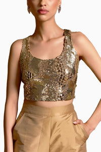 Shine bright in this dazzling sequins Radiance top, designed to turn heads with its eye-catching shimmer. Featuring a convenient side zip closure for a flattering fit, this top is perfect for making a statement at any event and is beautifully paired up with the Vista for a look that’s sure to dazzle!