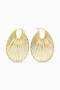 Make a luminous statement with the Radiant Fan Drops by Miapia. These stunning earrings feature a bold fan-inspired design, beautifully adorned with sparkling moissanites set across the front, catching the light from every angle. Crafted with vermeil gold over sterling silver, they balance elegance and durability, embodying the essence of sustainable demi-fine jewelry. Perfect for weddings, gala evenings, or anytime you want to shine, these earrings promise to add timeless brilliance to your collection.