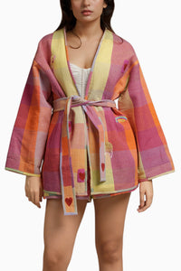 Wrap yourself in color and comfort with the Rainbow Jacket a quilted, oversized dream designed to turn heads and keep you cozy. Featuring intricate embroidery details and a relaxed silhouette, this statement piece is all about effortless layering. Cinch the look with the included belt for added shape, or wear it loose for that laid-back, off-duty vibe. Bold, bright, and beautifully crafted its your go-to jacket for chilly days with major style.