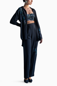 Featuring our Rainforest Black hand-painted embroidery, meticulously crafted in a twill. Elevate your style with this sophisticated ensemble designed to make a statement."
