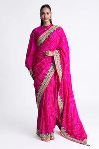 Rani Bandhani Silk Zardozi Embroidery Saree