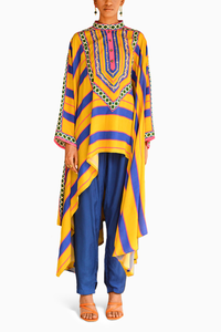 Composition- Silk Colour- Blue Embroidery- Hand embroidered Length- Cape: 28" (front) and 41"(back), Pants: 38" Components- 2 Product Code- SVESWATSVJ60916098