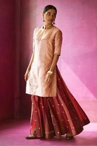 Composition- Kurta - Handwoven Silk Brocade, Sharara - Handwoven Pachranga Silk