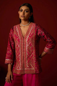 Rani Pink Patola Peplum Jacket With Marodiwork