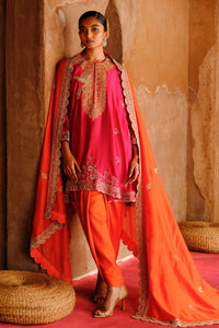 Radiate elegance with our Embroidery Tunic set, featuring a stunning tunic, chic dhoti, and an elegant dupatta. Crafted from luxurious dupion silk, this vibrant ensemble showcases a beautiful pink and red color combination, adorned with intricate Zardosi embroidery. Perfect for festive occasions and celebrations, this outfit effortlessly blends traditional charm with modern style. Step into the spotlight and embrace your unique flair!