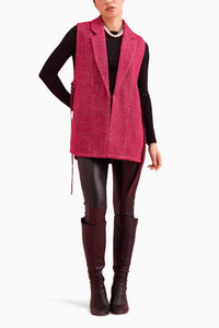 Waistcoat with a lapel collar and V-neckline With side open vents with adjustable straps
