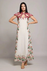Dazzle in our Crimson Elegance Red and White Bead Work Dress, radiating sophistication and glamour. Featuring vibrant red fabric accented with intricate bead work, this stunning dress creates a captivating contrast. Perfect for special occasions and evening events, it promises a memorable and timeless statement.