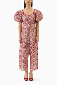 With it's weightless fa brica tion a nd mood-lifting deta ils this chica jumpsuit ha s a sweethea rt neckline. Fitted with a ma tching belt, embroidered cotton broderie a ngla ise. a Style this pa nt suit with a pa ir of high heels &a mp; sta tement ea rrings.