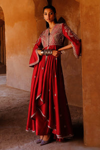 Elevate your style with our Embroidery Anarkali Drape paired with pants. Crafted from luxurious Chanderi fabric, this ensemble features a beautifully enhanced with intricate Zardosi embroidery. Perfect for festive occasions and special events, this contemporary design combines elegance and comfort, making it a standout choice for the modern woman. Embrace tradition with a stylish twist!