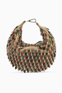 The Nano Boat Bag exemplifies meticulous craftsmanship with its exquisite design, featuring a detailed arrangement of stone and crystal beads that radiate opulence and charm. The all-over stone work enhances its glamorous appeal, ensuring it stands out as a distinctive accessory for any special occasion. Handcrafted with genuine artistry, this bag is available in elegant red, green and beige hues, adding a touch of sophistication to your ensemble.