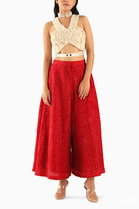 Featuring Red High Waist Skirt by Twenty Nine India from Nisha Collection. This red skirt adorns a flattering high waist and a chic tie-up belt, crafted from luxurious bandhani fabric for a blend of classic elegance and contemporary style.