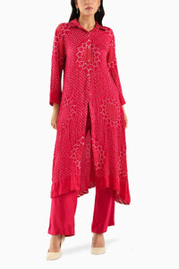 Featuring Jacket Shirt by Twenty Nine India from Nisha Collection. This piece blends the opulence of gajji silk with vibrant bandhani patterns, offering a chic, elongated silhouette. Ideal for layering, it adds a touch of sophistication and unique charm to any ensemble.