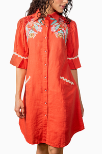 Red Linen Dress with Embroidery