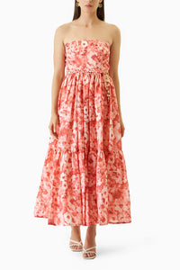 A breezy midi dress ideal for summer. Defined by subtle gatherings that bring fluidity to this effortless silhouette; flirty florals perfectly finish this must-have piece.