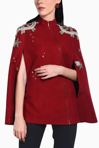 The Aquamarine-Inspired Red Maroon Cashmere Cape combines the rich, warm tones of deep red and maroon with a luxurious cashmere fabric. Inspired by the serene hues of aquamarine, this cape offers a striking contrast of color, bringing both depth and elegance to the design. The soft, breathable cashmere ensures comfort and warmth, making it perfect for cooler weather.