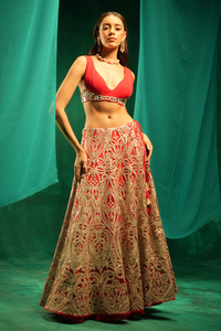 The Net fabric is specially designed by our team and crafted with great care and precision. With the floating mirror effect of jaaliwork, the garment is then styled at our workshop with finest details. We recommend dryclean only.