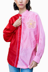 Featuring Red & Pink Vision Shirt by URAIB. Tailored from Chanderi fabric, this shirt showcases a vibrant fusion of Red and Pink, creating a sophisticated and statement-making addition to your wardrobe.