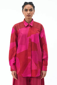 Fabric- 100% Silk, Handwoven Merino Wool Color-Red-Rani Components- 1 Product Code- SVEMEDI25W Maker's Shirt-REDRANI