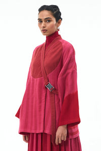 Fabric- Handwoven Merino Wool Color- Red-Rani Components- 1 Product Code- SVEMEDI25W Weaver's Jacket-REDRANI