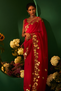 Red Silk Saree with Patti Work