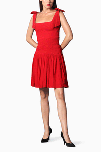 Featuring Red Square Neckline Smocking Dress by Swatee Singh. Immerse yourself in elegance with red Georgette. This fitted dress, featuring a square neckline and smocking, epitomizes timeless sophistication.